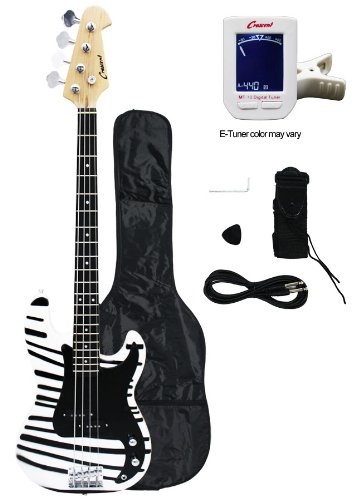 The best deal with Guitars Electric Basses. The Crescent Electric Bass Guitar Starter Kit - Zebra Print Color (Includes CrescentTM Digital Tuner) Product Description of This Electric Bass is ideal for musicians of any age! Whether you need another Bass Guitar to add to your collection or just need a little something for jam sessions in your garage, this Bass has 20 Frets and a great looking Basswood Body.