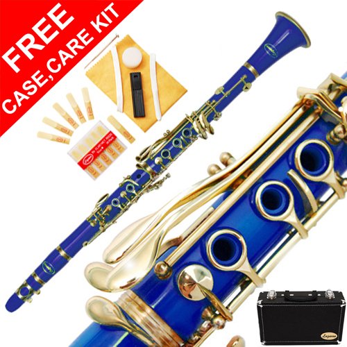 Low prices !! Musical Instruments Band . The 160-BU - ROYAL BLUE/GOLD B flat Clarinet Lazarro+11 Reeds,Case,Care Kit~12 COLORS Available,CLICK on LISTING to SEE All Colors Product Description of FREE Screwdriver, Cork Grease,Reeds Holder, Second Barrel,Soft Cleaning Cloth, Mouthpiece, Reed and Cap,CUSTOM MADE LEATHER like WOODEN CASE, CASE Compatible for Clarinet and Accessories,Extra 10 REEDS for More Practice